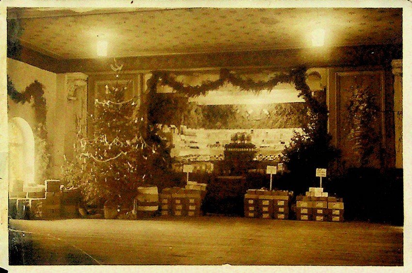 Stampa alla gelatina ai sali d'argento di misure 152x100 mm. Condizioni : USATO - Stato : Buono, ordinari segni d'uso e del tempo, qualche difetto marginale. Altre note : Ai piedi di un albero di Natale allestito probabilmente nei locali interni nella vecchia stazione di Trento sono ammonticchiati numerosi pacchetti, probabilmente di regali ai soldati al fronte, su due cartelli ciascuno sovrastante una piramide di regali legge: Kolonne I e Last Wagen Kolonne.