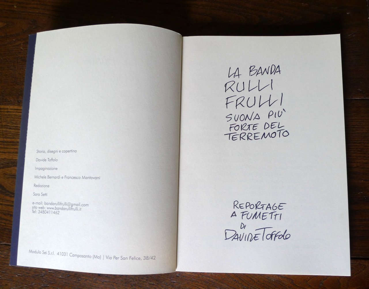 LA BANDA RULLI FRULLI SUONA PIÙ FORTEDEL TERREMOTO.REPORTAGE A FUMETTI DI DAVIDE TOFFOLO.Modulo Sei, Camposanto (MO) 2016,brossura, 24x17 cm., pagine non numerate,illustrazioni a fumetti in bianco e nero,peso: g.400cod.9543CONDIZIONI DEL LIBRO: ottime