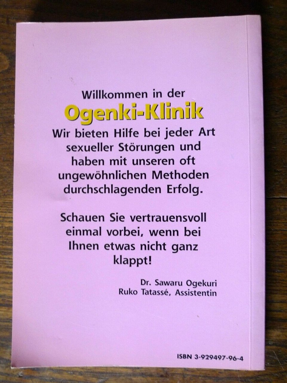 Haruka Inui,OGENKI CLINIC 1.Edition Erotik, München 1998,brossura, 21x15 cm., pagine non numerate,completamente illustrato a fumettiin bianco e nero,testo in tedesco,ISBN: 3-929497-92-1,peso:g.350