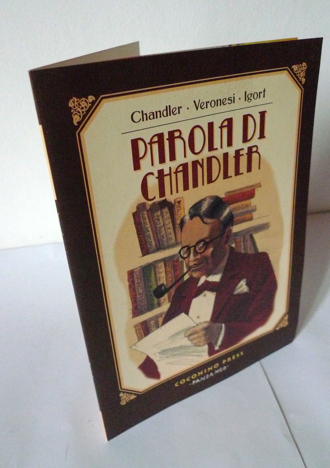Chandler / Veronesi / Igort,PAROLA DI CHANDLER. Albo promozionale.Coconino Press / Fandango, Bologna 2011,brossura, spillato, 24x17 cm., pp.8 (non numerate)illustrazioni a colori,peso: g.50CONDIZIONI DELL'ALBO: ottime,impercettibile piega alla copertina,per il resto come nuovo