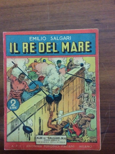 In-4 p. (mm. 305x245), brossura orig. a colori, spillato. pp. 36, virate in arancione. Albo n. 10 della serie Albi di Salgari. Fiorit. marginali e qualche strappetto, ma complessivam. ben conservato.