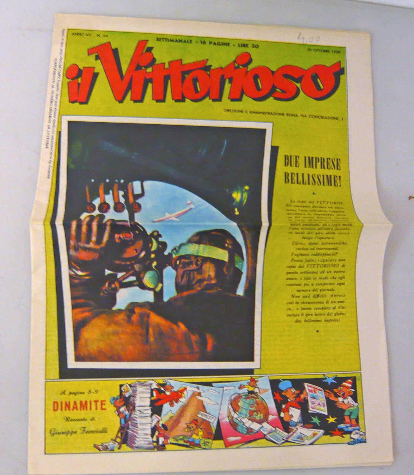 Settimanale IL VITTORIOSO n.44 1950[fumetti,Avvenire