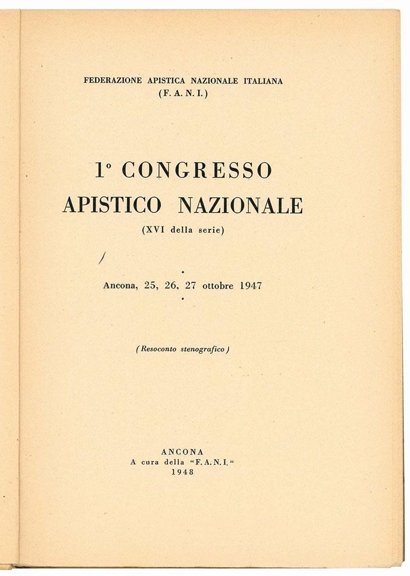 1^ Congresso Apistico Nazionale (XVI della serie). Ancona, 25, 26, 27 ottobre 1947. (Resoconto stenografico).