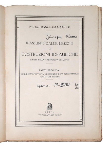 [1.]: Costruzioni idrauliche. [insieme con]: [2.]: Costruzioni idrauliche. Tavole. [insieme con]: [3.]: Riassunti dalle lezioni di costruzioni idrauliche tenute nella R. Università di Padova. Parte seconda. Acquedotti […] Fognature urbane.