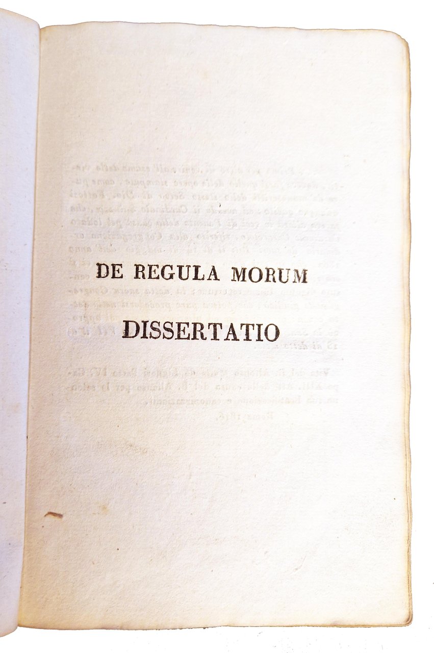 [1.]: De regula morum dissertatio. [2.]: De lucro ex mutuo dissertatio. [3.]: Animadversiones quaedam theologicae dialogi duo. [4.] Responsa ad nonnulla quaesita dialogi. [5.]: Epistolae sex ad amicos - Epistolae quaedam - Epistolae quinque ad amicos. Risposta ad un quesito di Mariano. [6.]: Trasfigurazione di nostro Signor Gesù Cristo Panegirico.