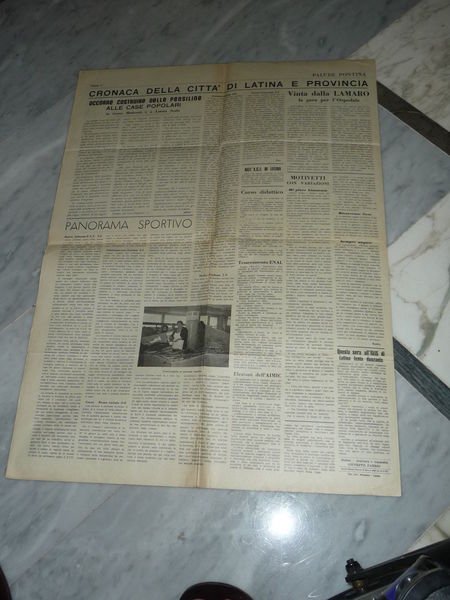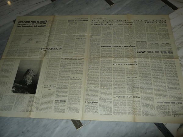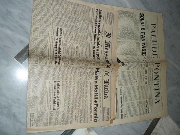 1 nm GIORNALE PALUDE PONTINA ed 1 nm IL MESSAGGERO DI LATINA DEL 1958 LITTORIA