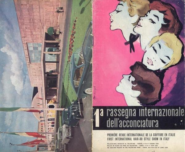 In 8°, fascicolo di 12 pp. con ill. b.n. n.t. e cop. a col. ill. da ; edito in occasione della prima Rassegna Internazionae dell'Acconciatura tenutasi al Palazzo del Ghiaccio al Valentino a Torino nei giorni 9 - 10 - 11 giugno 1956; buon es.