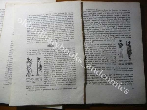 DESCRIZIONE: 13 pagine tratte dal libro sopracitato che contengono tavole in bianco e nero di uniformi disegnate dal Tenente Giovanni Bassi. Questo lotto comprende riproduzioni: - di uniformi della Guardia di Finanza in bianco e nero - distintivo d'onore dei finanzieri piemontesi - medaglia commemorativa pei difensori di Bologna - medaglia della repubblica Romana - medaglia ai difensori di Venezia. CONDIZIONI DELL'OGGETTO: Ottime. PESO/WEIGHT: 51 g without package