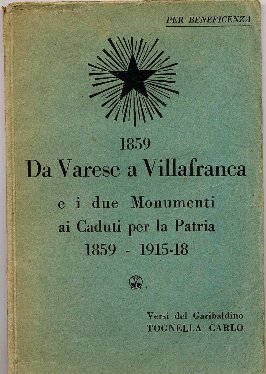 1859 Da Varese a Villafranca e i due monumenti ai Caduti per la Patria 1859-1915/18 - Versi del Garibaldino Tognella Carlo