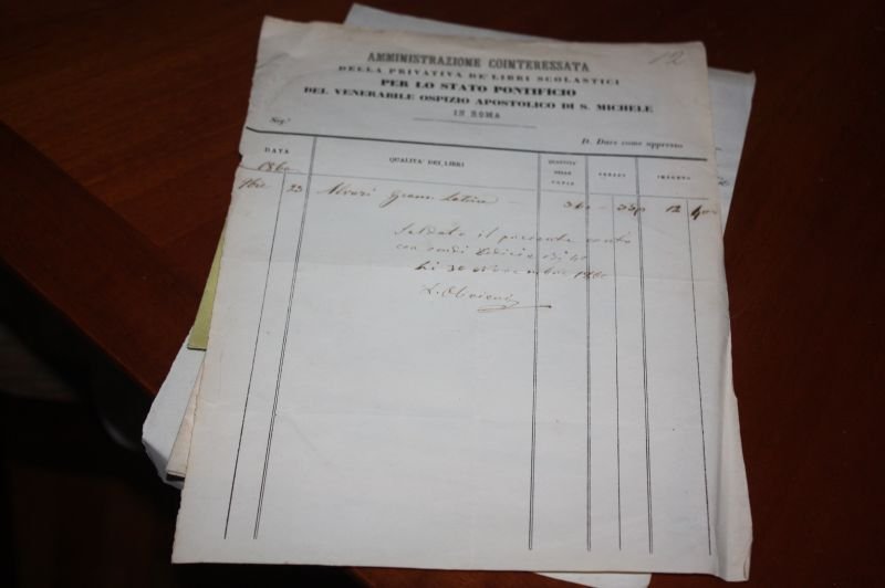 1860 STATO PONTIFICIO AMMINISTRAZIONE COINTERESSATA DELLA PRIVATA DEI LIBRI SCOLASTICI PER LO STATO PONTIFICIO DEL VENERABILE OSPIZIO APOSTOLICO S.MICHELE ROMA