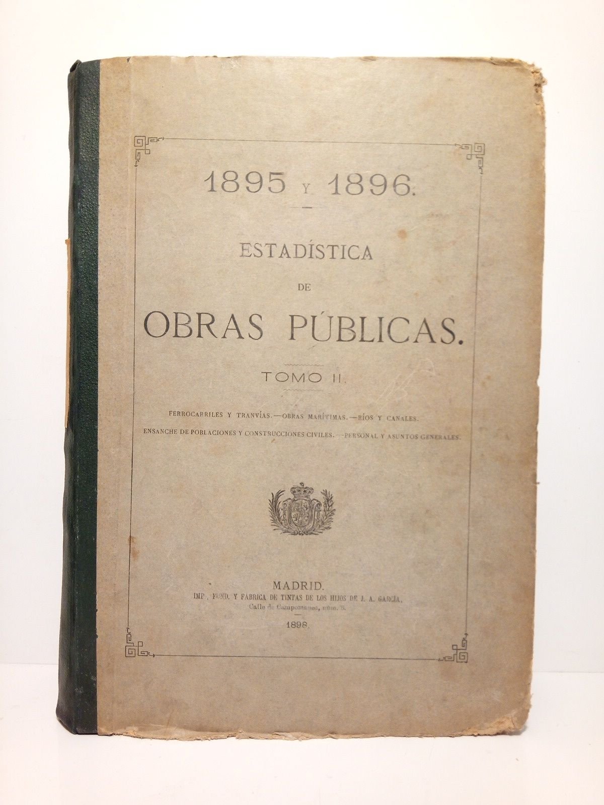 1895 y 1896. Estadística de Obras Públicas. TOMO II.: Ferrocarriles y tranvías, Obras Marítimas, Ríos y Canales, Ensanche de Poblaciones y Construcciones Civiles, Personal y Asuntos Generales / Lo presenta el Director General, Diego Arias de Miranda, Sr. Ingeniero Jefe, Director de los Anales y Anuarios estadísticos de Obras públicas