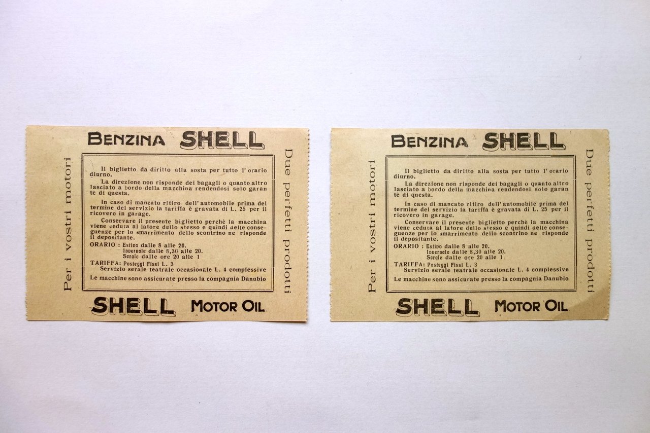 2 Biglietti Automobile Club Modena Servizio Custodia Autoveicoli Benzina Shell