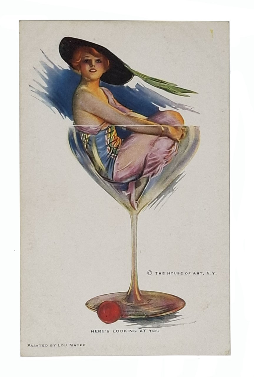 Lotto composto da due cartoline originali illustrate a colori dal celebre Lou Mayer, pittore americano (1869 - 1969). Copyright The House of Art, N.Y. Non viaggiate. Le due cartoline appartengono ad una stessa serie (No. 883 e No. 879) nella quale fascinose dame vengono ritratte all'interno di una coppa di champagne o su un piatto da portata. Formato: 14 x 9 cm circa. Stato di conservazione: una leggera ombra sui quattro vertici delle due cartoline, in quanto custodite (non fissate) all'interno di un album d'epoca ma, nel complesso, ben conservate. Non datate ma presumibilmente databili attorno al 1920.