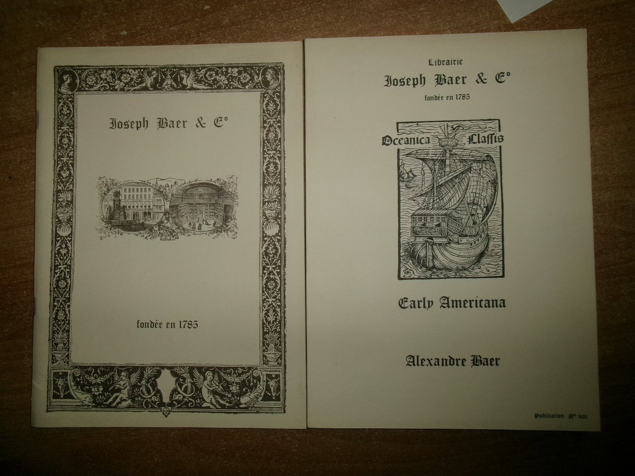 2 cataloghi Librairie JOSEPH BAER & Co. Paris. In-8° grande, br. Accurata descrizione con prezzi in Franchi di numerosi libri rari- Ottimo stato. Neg. mob. E entro busta trasp.