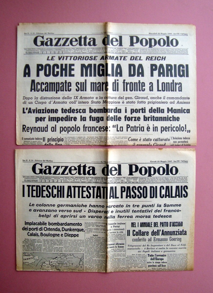2 giornali maggio 1940 I Tedeschi al passo di Calais A poche miglia da Parigi