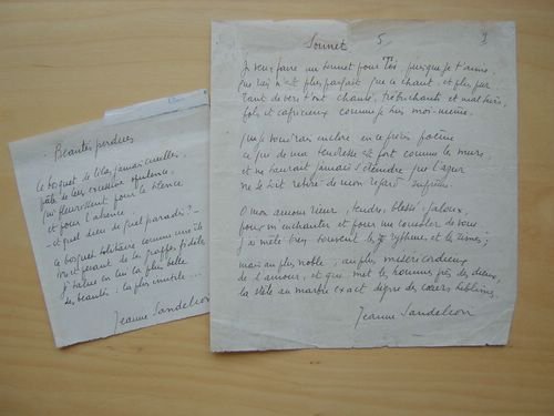 2 Poèmes manuscrits : Sonnets / Beautés perdues : "Je veux faire un sonnet pour toi, puisque je t'aime / que rien n'est plus parfait que ce chant et plus pur / tant de vers t'ont chanté, trébuchants et mal sûrs / fols et capricieux comme je suis moi-même "