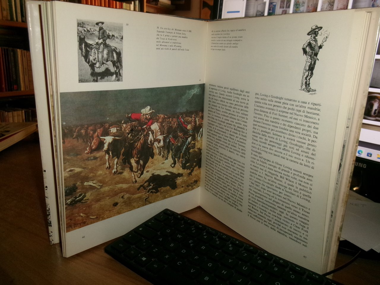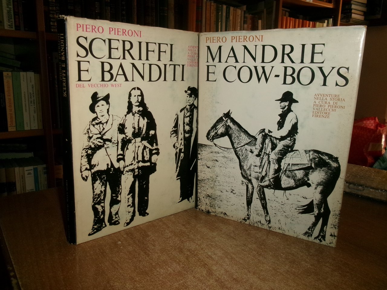 PIERO PIERONI. Firenze, Vallecchi Editore, 1968 - 1974. MANDRIE e COW-BOYS - SCERIFFI e BANDITI. 2 volumi in-8° grande, tela edit. bleu con titoli dorati e sovracopertine. 145 pp.; 146 pp. I due volumi sono corredati da numerose illustrazioni anche a piena pagina a colori e in bianco e nero n.t. Libri usati ma ben conservati. Neg. mob. 14 basso