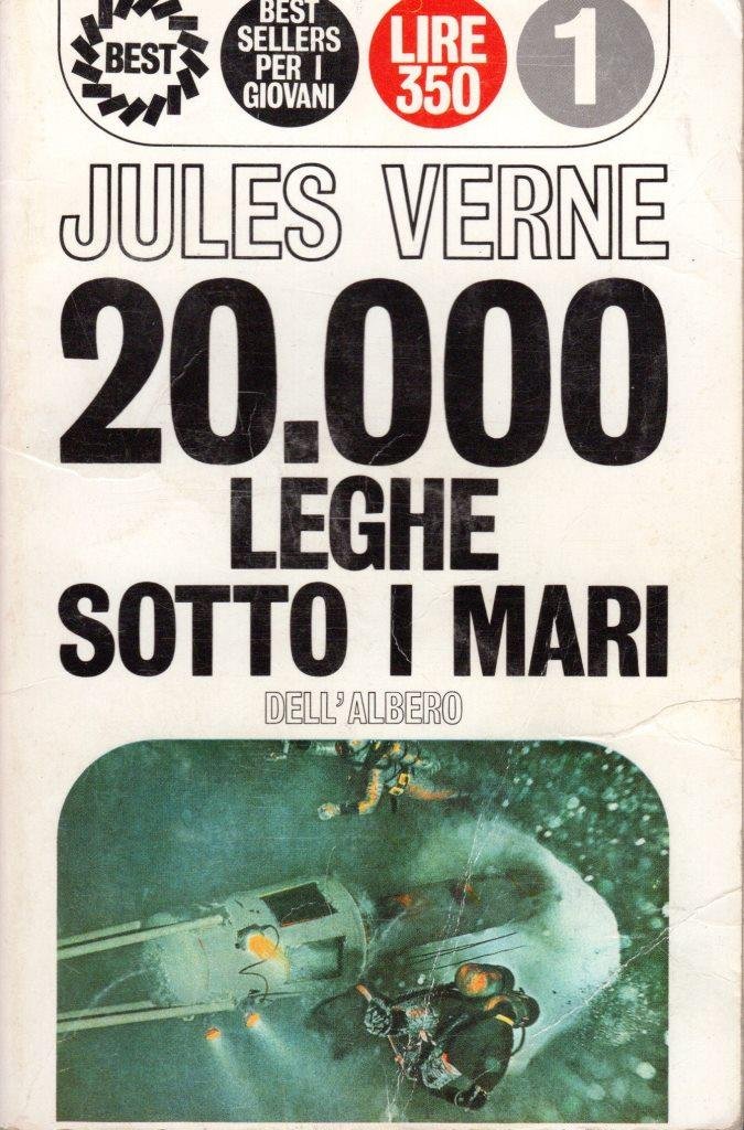 20.000 leghe sotto i mari, prima edizione febbraio 1966, pp. 250, formato 11,5 x 17,5.<BR>Copertina morbida di colore bianco con piccola illustrazione e titoli in nero al piatto anteriore e sul dorso. <BR>Segni di usura ai piatti. Nel complesso buone condizioni.