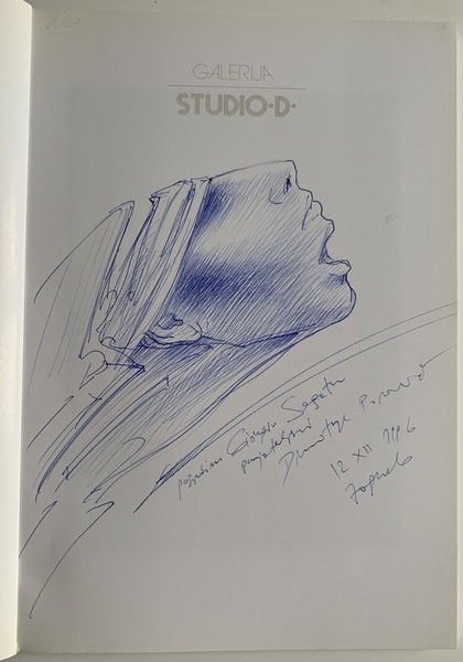 24x17 cm; 79, (1) pp. Brossura editoriale. Bellissimo disegno a penna e a piena pagina con dedica del celebre artista croato ad importante critico d'arte italiano alla prima carta (datato 12.12.1996 Zagreb). Prima edizione in ottime condizioni di conservazione. Importante apparato grafico. Dimitrije Popovic, eminente pittore del Montenegro e della Croazia, scultore, critico d'arte e filosofo nato a Cetinje, Montenegro, il 4 marzo 1951, si è tematicamente e tecnicamente evoluto attraverso diverse fasi, ispirate dai disegni di Leonardo, dal surrealismo e dalle sculture di Ivan Mestrovic. L'artista che vive e lavora in Croazia, fece la sua prima apparizione pubblica a Cetinje nel 1969 al Salon Art of Youth. Nel corso del 1970 espone a Podgorica, Bari (Italia), Dubrovnik e Zagabria.<BR>La sua esplosione a livello internazionale avviene nel 1974 durante un suo soggiorno a Parigi dove incontra e conosce il grande collezionista d'arte francese Davrier che ne apprezza fin da subito la forza creativa. Nel 1978 Davrier espone alcune opere di Popovic alla Braumüller Alexander galleria con i quadri di Salvador Dalí, Ernst Fuchs, Leonor Fini, Mati Klarwein, Victor Brauner e Miodrag Djuric - Dado (pittore). La Galleria Liberty e Universal Belle Arti di Washington nel 1982 allestirono una mostra combinata di stampe e altre opere grafiche di Dalí e Popovic a Pforzheim. Da quel momento è un susseguirsi di successi. Dimitrije Popovic ha avuto circa 60 mostre personali e partecipato a oltre 150 mostre collettive e manifestazioni artistiche di altro genere. Prima edizione in ottime condizioni arricchita dalla bella dedica e dal disegno.