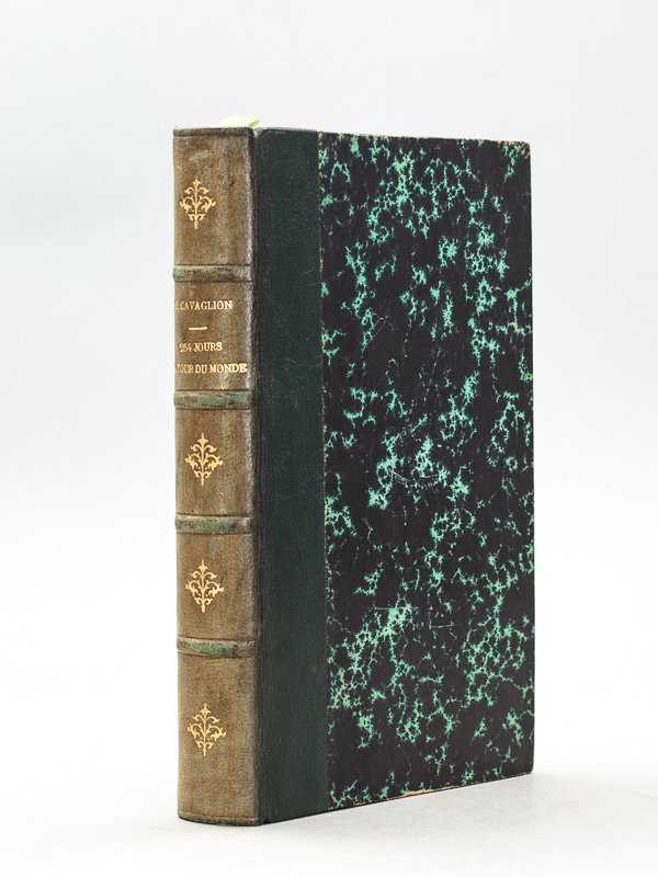 1 vol. in-12 reliure demi-basane verte, dos à 4 nerfs orné (fleurons), Librairie Hachette et cie, Paris, 1892, 414 pp. et une carte dépliante Bon état (dos passé, bon exemplaire par ailleurs) pour ce rare exemplaire de l'édition originale du récit d'un voyage effectué de novembre 1890 à août 1891 à Ceylan, aux Indes, en Birmanie, à Singapour (Singapore), en Cochinchine et au Tonkin et en Chine, pour finir en Amérique et au Canada.