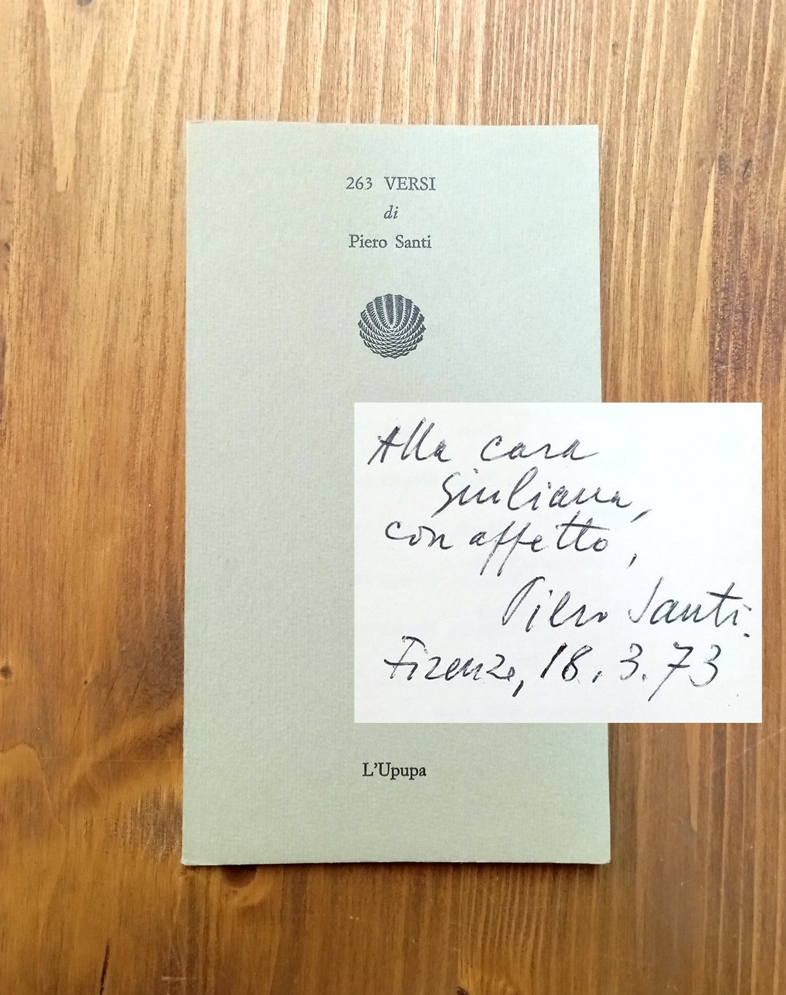 Prima edizione. Collana "Taccuini Segreti", 2; tiratura di 600 esemplari numerati, il nostro è il n. 20. In apertura, dedica e firma dell'Autore datata marzo 1973 - Brossura editoriale di 8,5 x 15 cm, 28 pagine. Esemplare in perfette condizioni di un volumetto piuttosto raro.