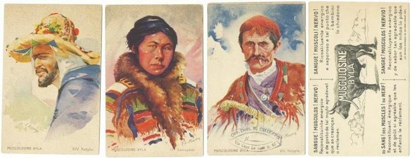 3 Cartoline Pubblicitarie Musculosine Byla. Ii. Samoyéde, Vii. Hongrie, Xiv. Kabylie