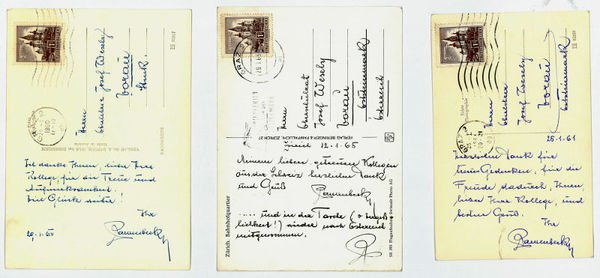 3 eigenh. Bildpostkarten mit U.
