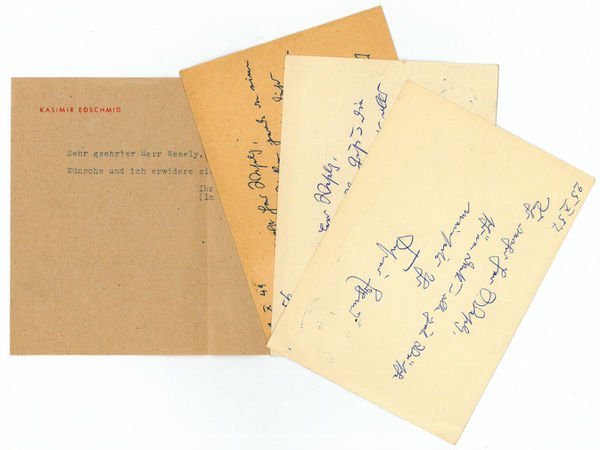 3 eigenh. Postkarten mit U. sowie 1 ms. Brief und 1 gedr. Billett mit eh. U.