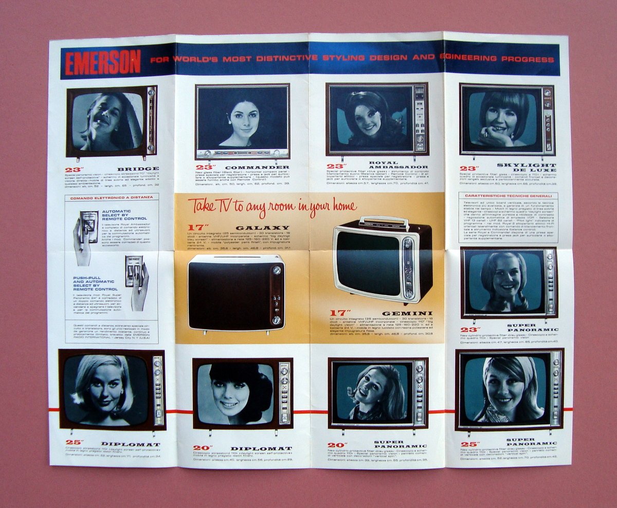 3 Pieghevoli Pubblicitarii Emerson TV Frigoriferi fine anni '50 primi anni'60