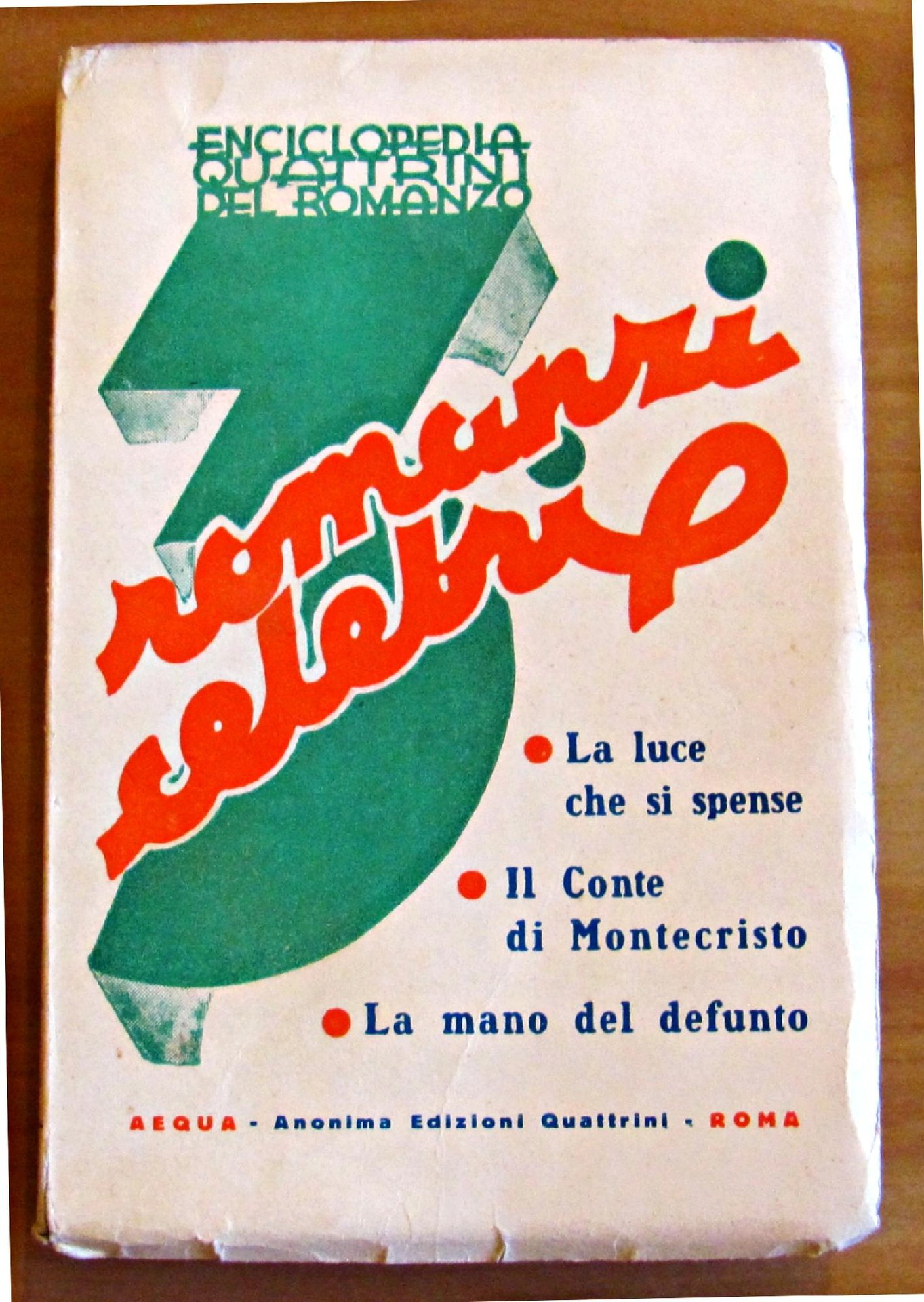 R. Kipling: La luce che si spense; A. Dumas: Il Conte di Montecristo; A. Le Prince: La mano del defunto (continuazione del Conte di Montecristo). Edizioni Aequa - Roma, 1937. Brossura editoriale. 13,5x19,5; pp.286. RARO. BUONISSIMO STATO , Molto buono (Very Good)