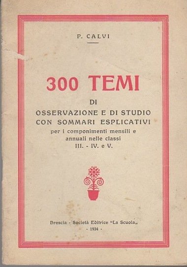300 temi di osservazione e di studio con sommari esplicativi per i componimenti mensili e annuali nelle classi III. - IV. e V.