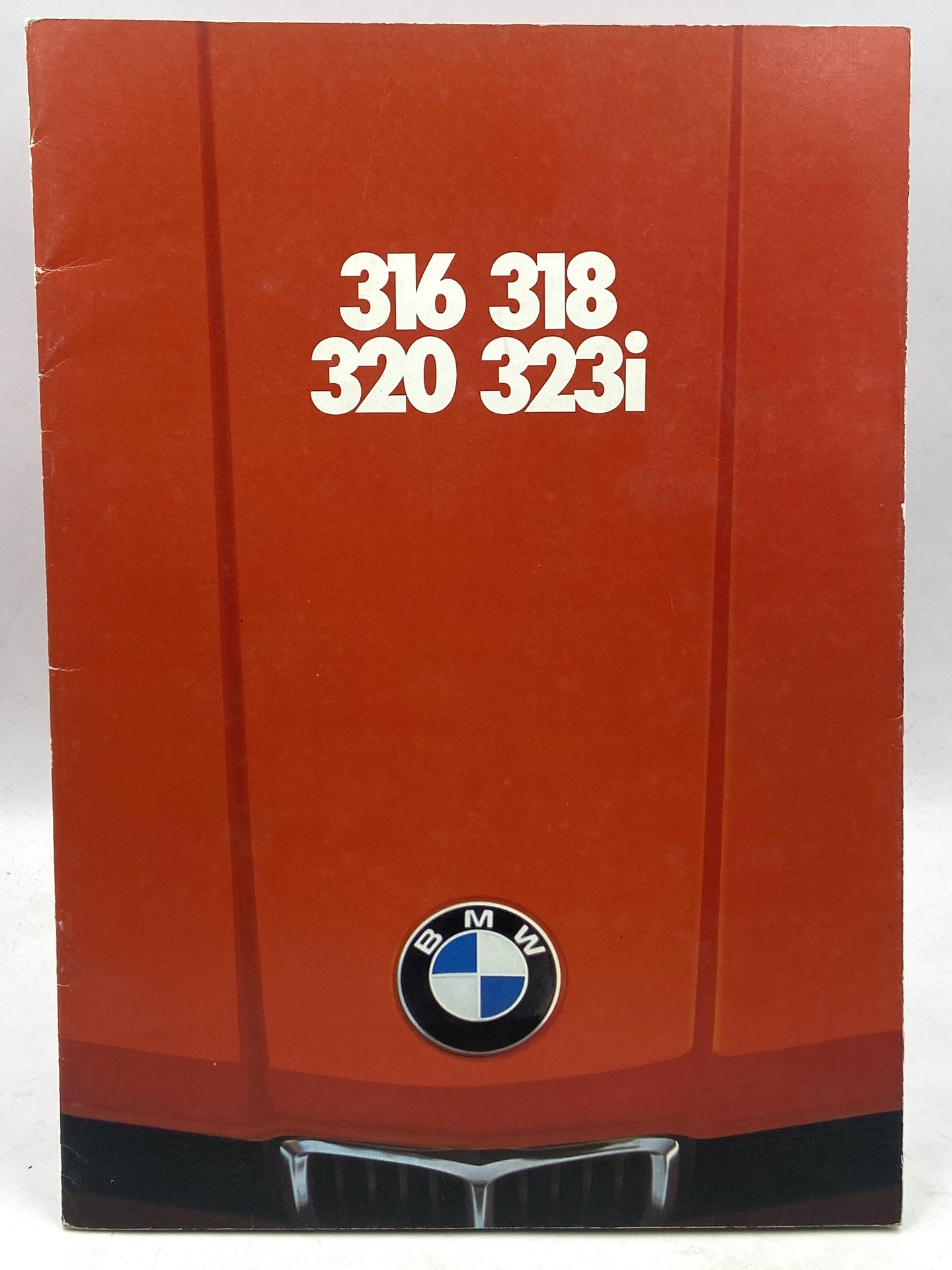 Brochure pubblicitaria per le vetture BMW 316, 318, 320 e 323i, spillata, cm 29.5 x 21, pp (16) più copertine, diverse pagine e le carte di copertina sono doppie e ripiegate. Illustrato a colori. Edizione italiana. Su una pagina timbro di concessionario bresciano e annotazione a penna dei prezzi.