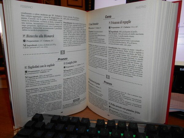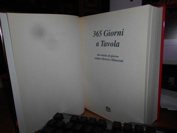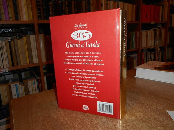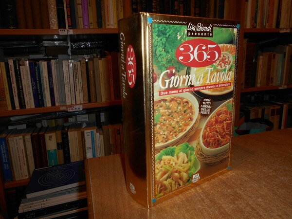 BIONDI LISA. Novara, De Agostini, 1998. 365 Giorni a Tavola. Due menu al giorno sempre diversi e bilanciati. In-8°, cartonato edit. ill. a col. 608 pp. con innumerevoli semplici ricette. Come nuovo. Uff. stanzetta mob. a sinistra carc.