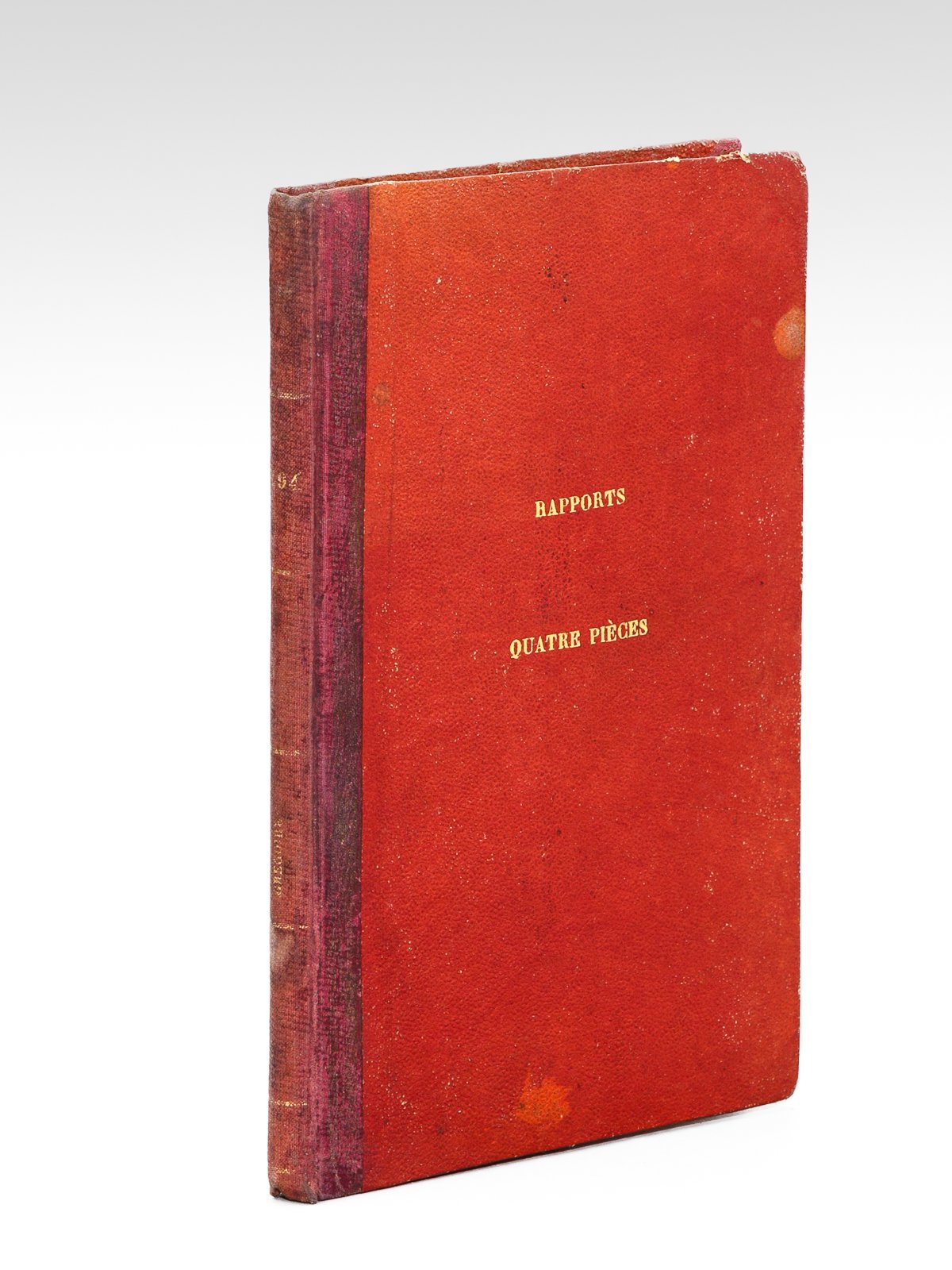1 vol. in-8 cartonnage demi-percaline rouge : Convention Nationale. Instruction Publique. Rapport sur la Bibliographie, par Grégoire. Séance du 22 Germinal, l'an 2 de la République une et indivisible ; suivi du Décret de la Convention Nationale, De l'Imprimerie de la République, 16 pp. Tourneux, 17714 [Suivi de : ] Rapport sur la nécessité et les moyens d'anéantir les patois, et d'universaliser l'usage de la langue française, par Grégoire ; séance du 16 prairial, l'an deuxième de la République une et indivisible ; suivi du Décret de la Convention Nationale, De l'Imprimerie de la République, Paris, s.d., 19 pp. Tourneux, 17063a (il a également été publié un tirage en 28 pp.) [ Suivi de : ] Troisième Rapport sur le Vandalisme, par Grégoire, Séance du 24 Frimaire l'an III de la République française, une et indivisible, imprimé par Ordre de la Convention Nationale, et envoyé par son ordre aux Autorités constitués, De l'Imprimerie Nationale des Lois, A Paris, Frimaire An III, 21 pp. Tourneux, 17721 [ Suivi de : ] Système de Dénominations topographiques pour les places, rues, quais, etc. de toutes les communes de la République par le Citoyen Grégoire, Imprimé par Ordre du Comité d'Instruction Publique, De l'Imprimerie Nationale, 27 pp. Tourneux, 14643 Réunion de 4 rares et importantes brochures de l'abbé Grégoire, toutes en édition originale. Bon état (cartonnage lég. frotté, petites mouill. anciennes dans la seconde et troisième brochures, bon exemplaire par ailleurs).