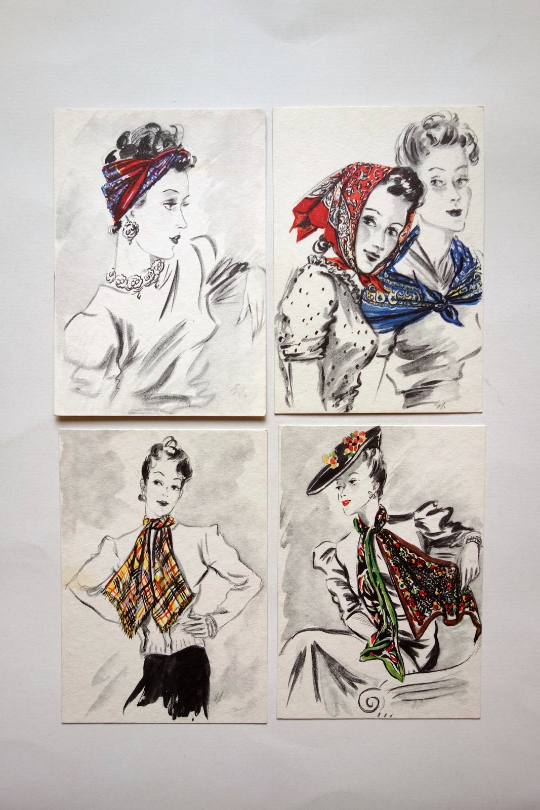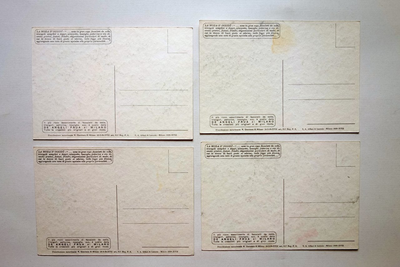 4 Cartoline Pubblicit‡ De Angeli Frua Milano Moda Femminile Non Viaggiate 1939