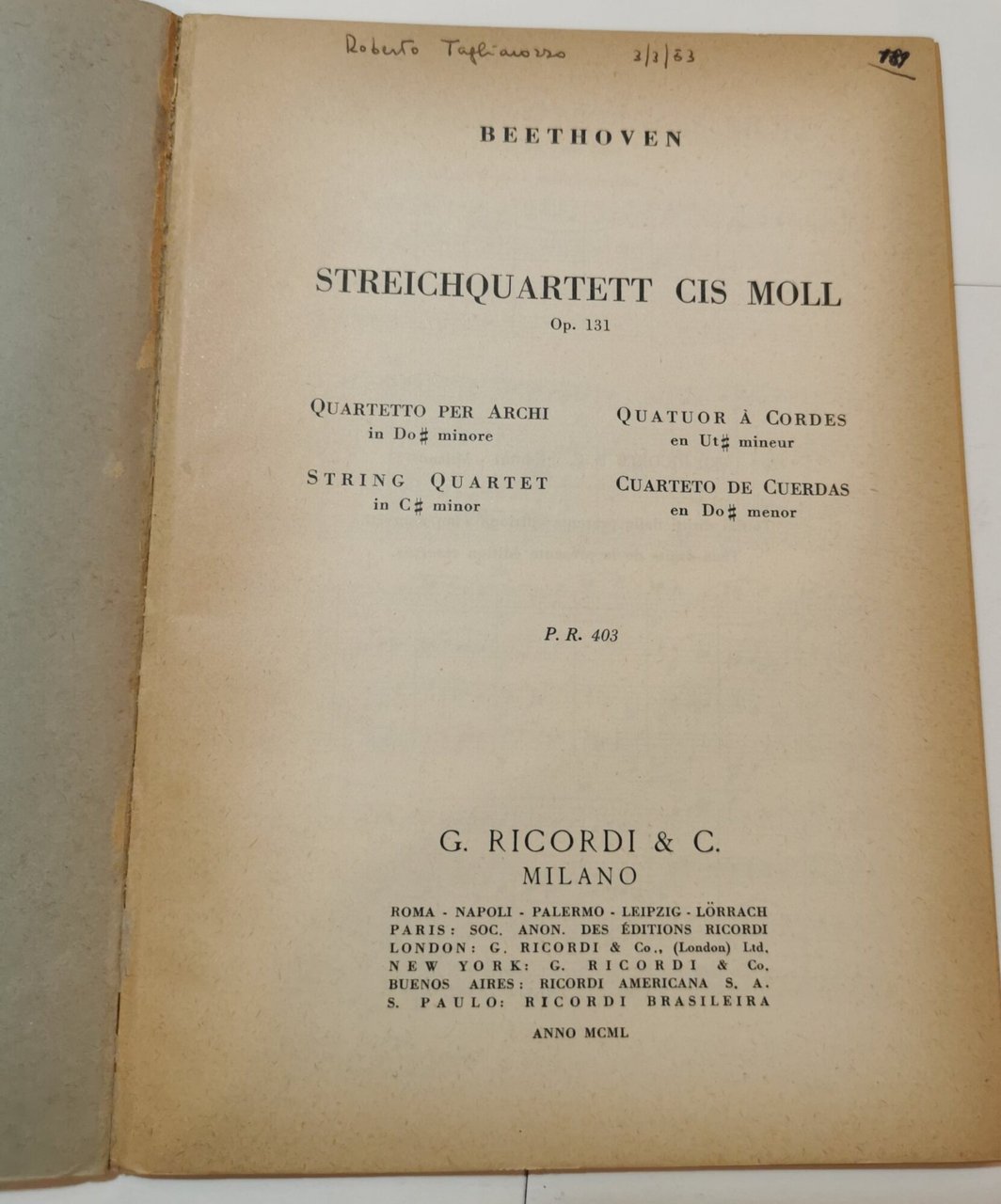 4 voll. quartetto per archi : in mi b magg. op.127/ in si b magg. op.130/ in do # min. op.131/ in la min. op.132
