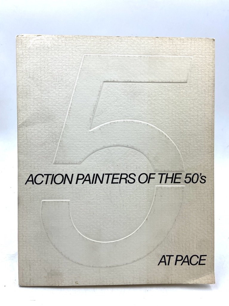 Cartella editoriale con titoli in nero e a rilievo, cm 22.5 x 18, all’interno un foglio in carta bruna ripiegato in tre (complessive 6 facciate cm 22 x 18) e 5 riproduzioni a colori ciascuna contenuta in un foglio ripiegato con titolo e seconda illustrazione in nero. Catalogo della mostra tenutasi nella sede newyorkese della Pace Gallery di Arne Glimcher da 21 settembre al 13 ottobre 1979, con opere di Willem De Kooning, Franz Kline, Lee Krasner, Robert Motherwell e Jackson Pollock. Per ciascun artista riprodotta un’opera a colori su cartoncino patinato, e una seconda in nero nel foglio ripiegato che protegge la tavola.Testo critico di Harold Rosenberg (The American Action Painters) da Art News del dicembre 1952.