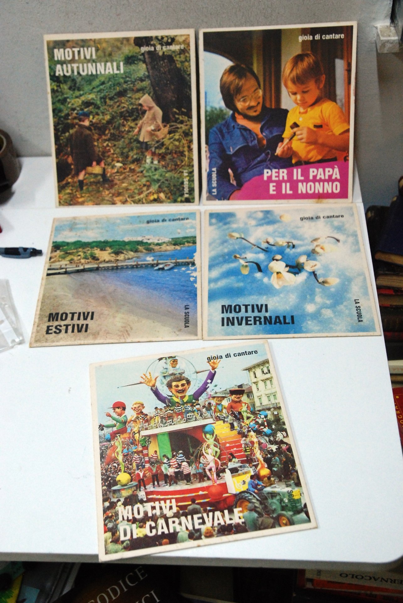 45 giri gioia di cantare 5 dischi motivi annuali estivi di carnevale invernali per il papa papà e il nonno. la scuola .