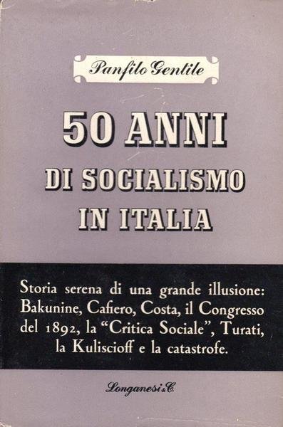 50 anni di socialismo in Italia, prima edizione ottobre 1947, pp. 204, formato 12,5 x 18,5.<BR>Copertina morbida di colore grigio con titoli in nero al piatto anteriore e sul dorso. Sovraccoperta di colore grigio con titoli in bianco. Volume facente parte della collana Il Mondo Nuovo. <BR>Ottime condizioni.