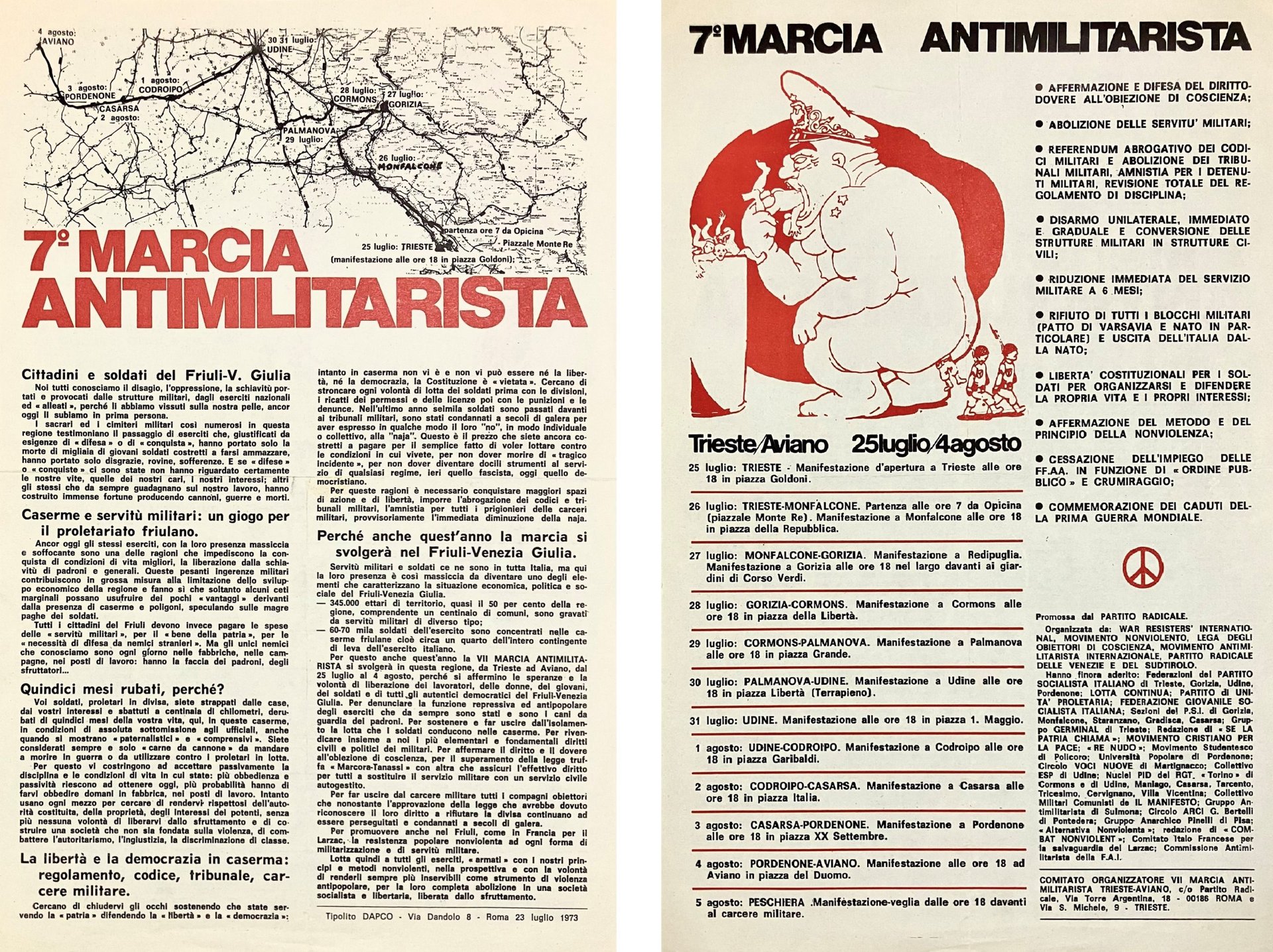 Due volantini: il programma con le tappe della marcia Trieste-Aviano insieme all'itinerario. In ottimo stato.