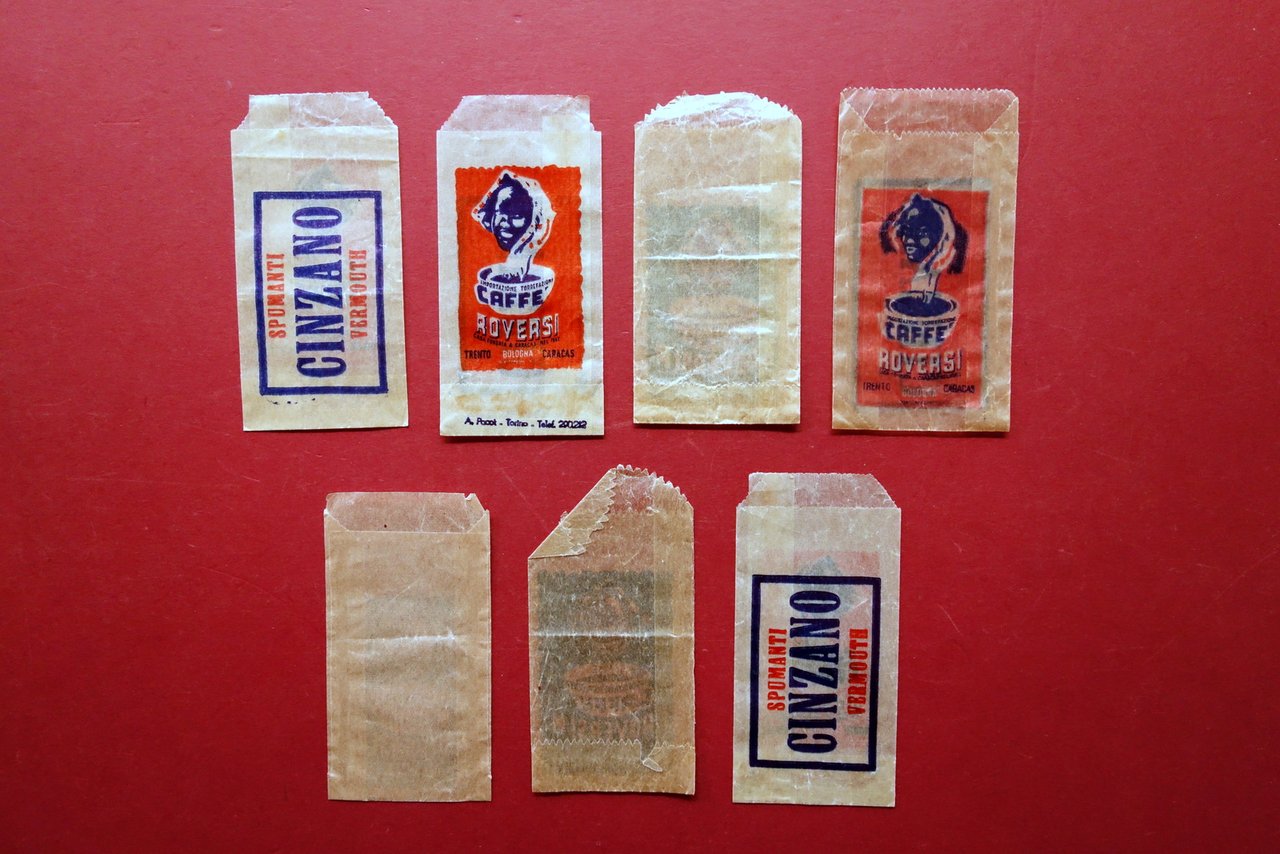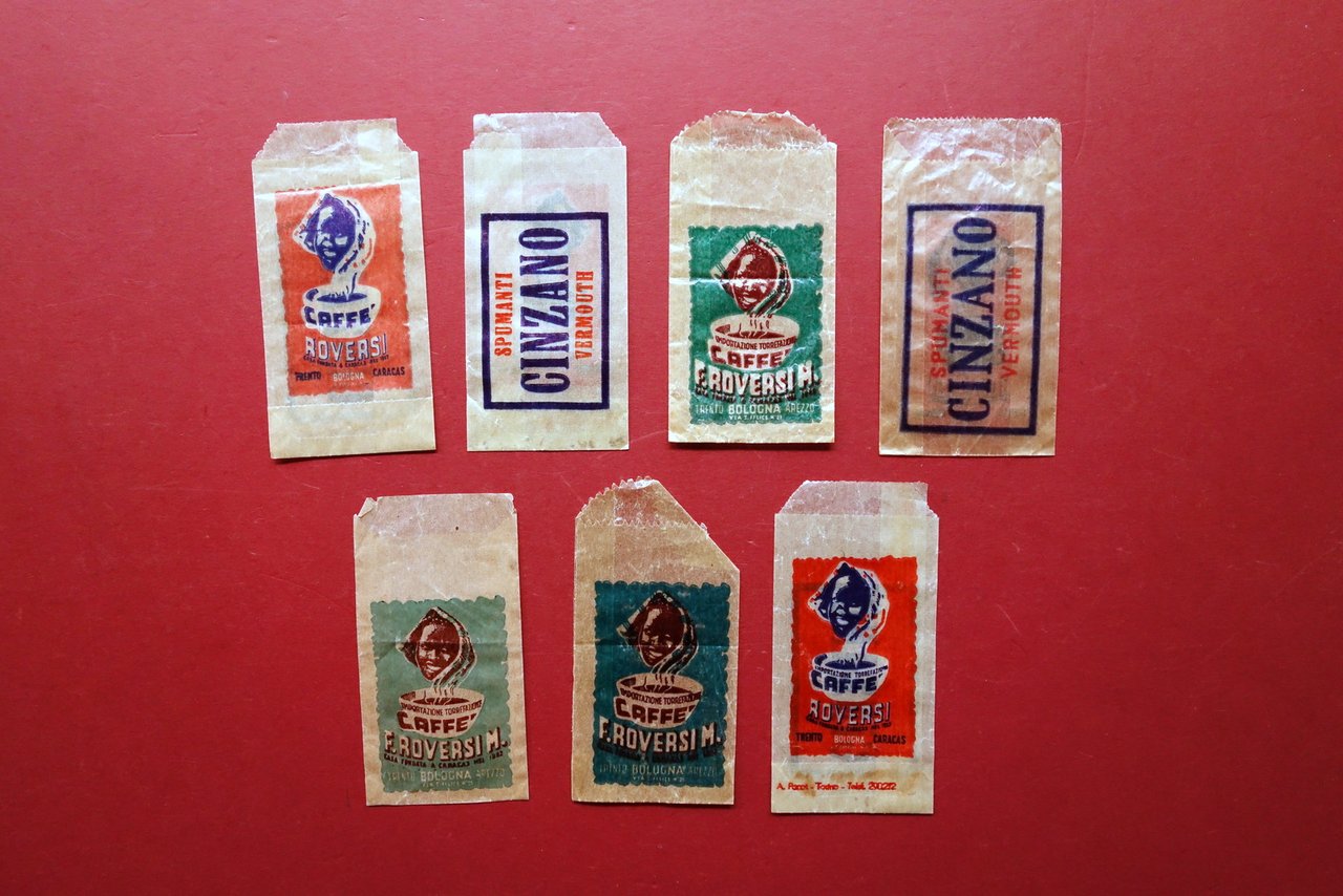 7 Bustine Sigarette Pubblicità Anni '60 Cinzano Martini Caffè Roversi