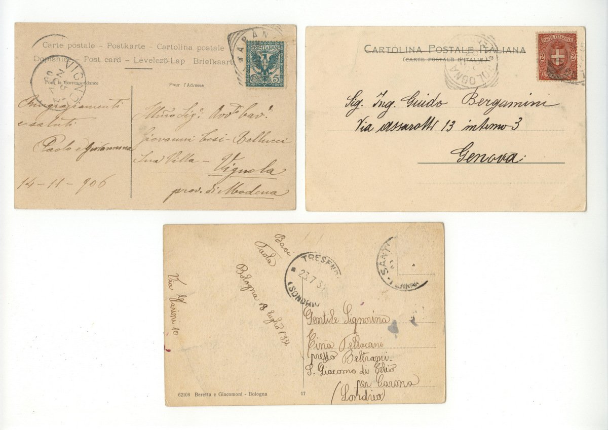 7 Cartoline originali, Alba Genova Livorno Pegli Bologna Abano-Bagni Edizioni varie, s. d. (primi anni del Novecento); cm 14x9. Cartolina originale ill. in b. n. Viaggiata, animata. Condizioni di conservazione Cartolina molto ben conservata. CART.3082G