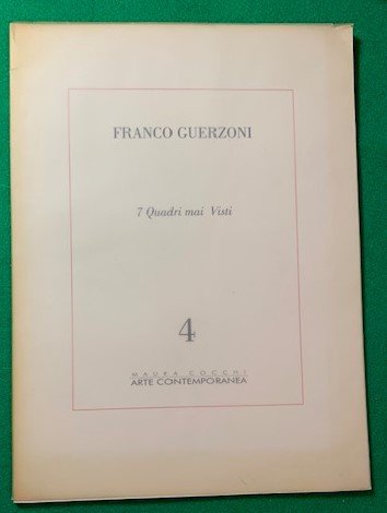 33x24,5 cm; 34, (2) pp. Brossura editoriale con sopraccoperta in carta-pergamena (qualche piccolo strappetto alla carta-pergamena senza perdita di carta). Prima edizione in tiratura di soli 1000 esemplari, il nostro è l'esemplare numero 229, di quest'opera del noto artista modenese, Franco Guerzoni. Fra i massimi esponenti dell'avanguardia artistica italiana, Franco Guerzoni, inizia la sua attività artistica agli inizi degli anni 70° del XX° secolo con una profonda e ragionata rielaborazione e rivisitazione del mondo dell'archeologia come recupero di una stratificazione culturale e del tempo come forza disgregante. In Guerzoni la ricerca di un sistema di rappresentazione dell'immagine lo porta ad indagare le potenzialità del medium fotografico collaborando così con alcuni dei più importanti fotografi contemporanei come Franco Vaccari, Claudio Parmiggiani e Luigi Ghirri.