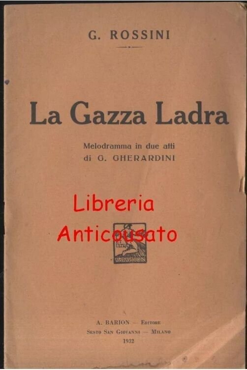 di Eugenio Scribe e Germano Delavigne. 1937. 3) Gioachino Rossini LA GAZZA LADRA melodramma in due atti di G. Gherardini, 1932.