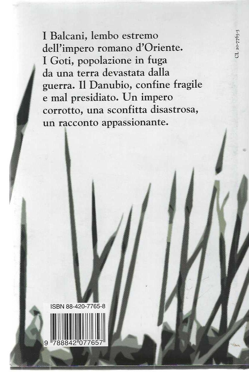 Cartonato editoriale rigido con titolo in bianco al dorso, presente una macchia.
