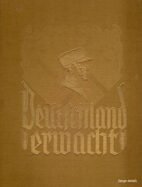 In-4, 23,5x31,5 cm. In lingua tedesca, molto illustrato. Traduzione titolo: "La Germania si sveglia; Divenire, lotta e vittoria NSDAP". Cartonato editoriale in tela piena marrone, titolo in oro in copertina, profilo SA in oro alla prima di copertina, rara sovraccoperta strappata in alcuni punti con pezzetti mancanti; 225 immagini in bianco/nero e a colori, plastificate. - Fotografie di Heinrich Hoffmann.