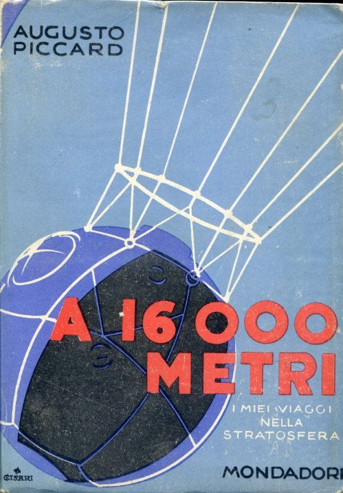 In-8°, pp. XX, 311, (3), brossura editoriale illustrata a colori da Giulio Cisari. 86 illustrazioni in b.n. f.t., per lo più riproducenti fotografie originali, un grafico, 4 carte e un fac-simile f.t., lungo 11 pagine, di un autografo di Gabriele D'Annunzio 'Aux mains d'Auguste Piccard', datato 19 agosto 1932. Eccellente esemplare a fogli chiusi. Prima edizione mondiale. Traduzione autorizzata effettuata da D. Secco Suardo sul manoscritto tedesco, di questo eccezionale resoconto del viaggio di Auguste Piccard (Basilea, 1884-Losanna, 1962) nella stratosfera sino alla quota di 16.700 metri. Prefazione di Italo Balbo; con un lungo scritto di Orio Vergani su 'Piccard in Italia' alle pp. 263-306. Il resoconto contiene una quantità di notazioni sull'atmosfera e la sua composizione, sulla troposfera e la stratosfera, sulle radiazioni cosmiche, sui palloni stratosferici, sulla fisiologia della respirazione nell'aria rarefatta, ecc. Esiste anche una rara tiratura di testa di soli 110 esemplari numerati e con firma autografa di Piccard, in legatura in tela ricavata dal tessuto originale del pallone usato da Piccard, 'utilizzando alcune striscie tolte dopo la seconda ascensione stratosferica per eseguire prove di laboratorio sul comportamento del materiale dell'involucro'.