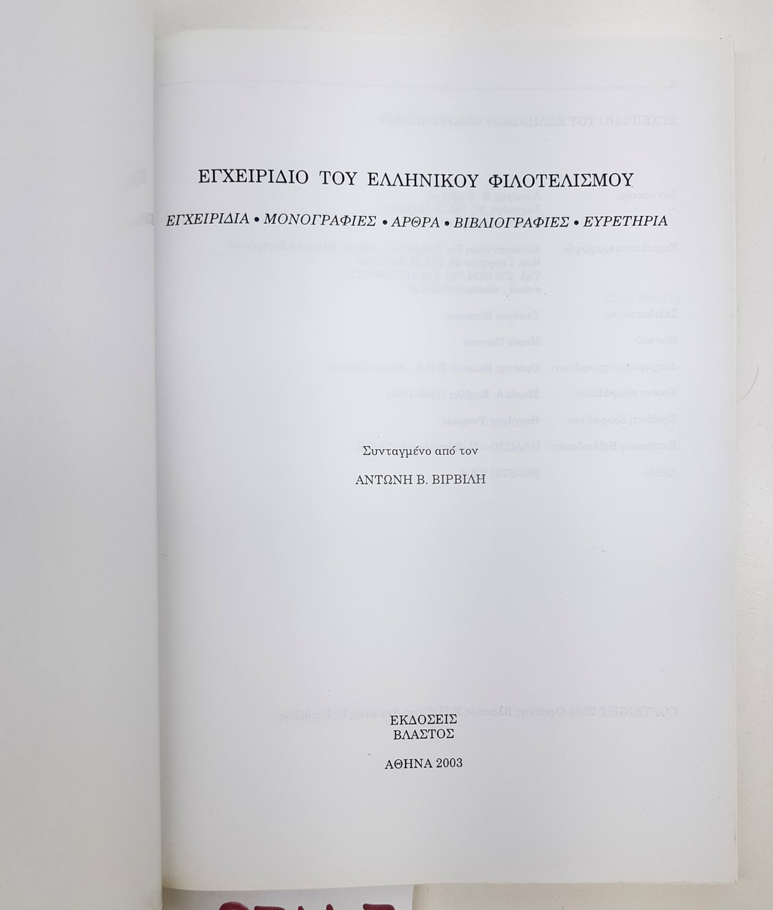 A. B. Virvilis FRPSL Handbook of hellenic philately Vlastos 2003 Manuale di filatelia ellenica