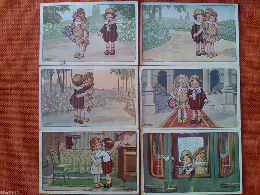 Bertiglia - CARTOLINE ILLUSTRATE / Serie 1051 completa di 6 affrancate - 1918cm 9 x 14 - 1918