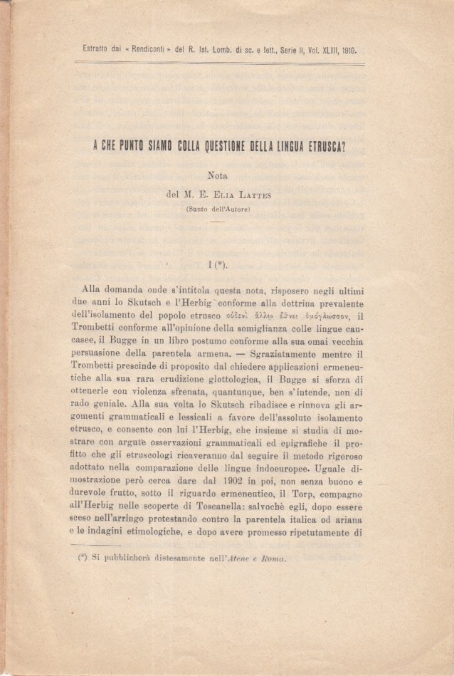 A Che Punto Siamo Sulla Questione Della Lingua Etrusca? Nota Di M.e. Elia Lattes